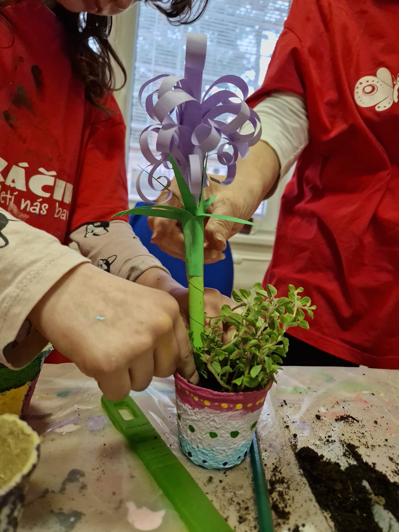 Spolu s deťmi sme na výtvarnom krúžku pripravili darček k MDŽ – maľovaný mini kvetináč s vysadeným oregánom a papierovým hyacintom, ktorý však nezalievajte :-). [Show slideshow] ◄ 1 2 3 ► Predchádz. Článok Blahoželanie k MDŽ Nasled. Článok Tímový boccia tréning Súvisiace články Malí šperkári17. apríla 2026 Pohyb bez bariér17. apríla 2026 Pozdravujeme z Trnavy12. apríla 2026