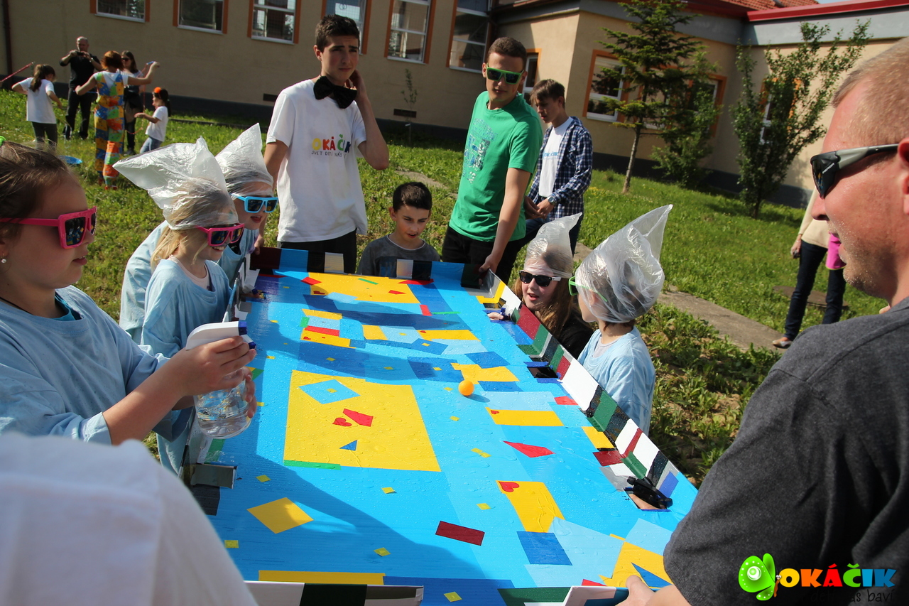 Deň detí s Okáčikom 2015 bol o radosti, skvelej zábave, tanci, akčných výzvach, súťažení o super ceny, premiére adrenalinového ping-pong vodného fotbalu, o nespútanom mokrom šantení, mega bublinách, sladkých dobrotách a napínavom finále v camp challenge. Veľa detí, rodičia a my organizátori – naša okáčikovská rodina. Ešte dlho po skončení premiéry sme sa tešili. Spolu objavujeme bohatstvo jedinečnosti a radosť, ktorá sa nedá opísať. Pozrite si foto, radosť detí a nadšenie úžasných ľudí, ktorí venujú voľný čas deťom. Ďakujeme všetkým za skvelú atmosféru.