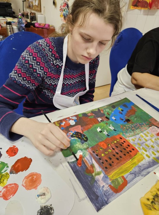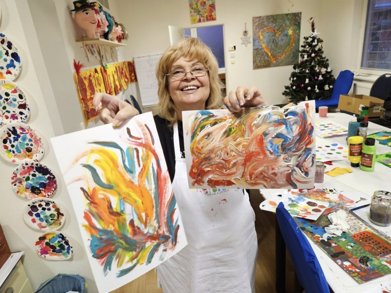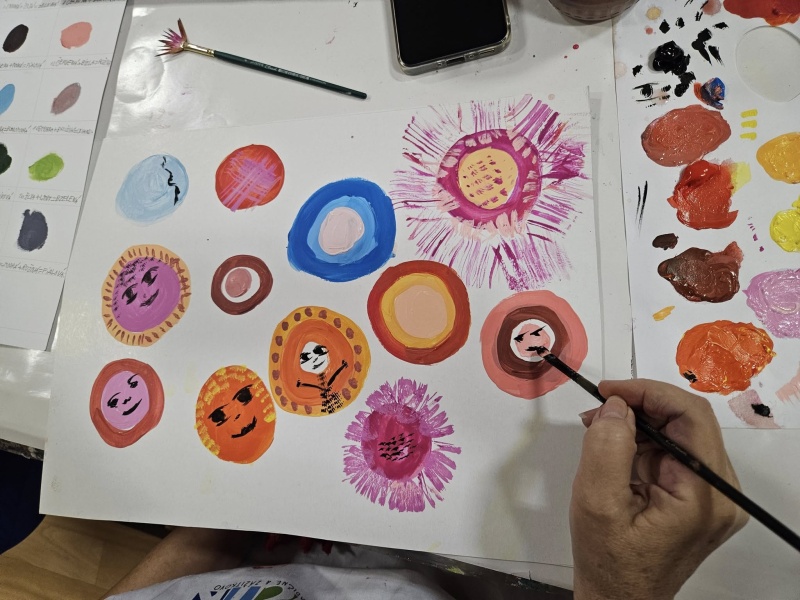 Naše tvorenie hýri pestrýmmi farbami ktoré sme sa naučili miešať minulú hodinu. Spolu s nami maľujú aj deti s autizmom. Majú úžasný, výtvarný prejav. V inkluzívnom prostredí farbami, tvarmi, líniami dokážu vyjadriť svoje myšlienky, predstavy či zážitky.