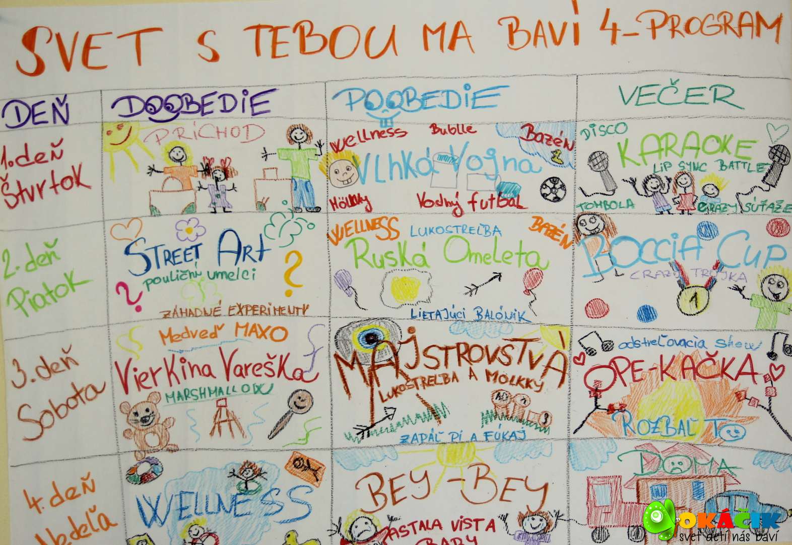Verím, že všetko čo spolu prežívame má zmysel a chcem, aby to bolo prínosom aj pre iných ľudí. Veď motivácia, ktorá prichádza, keď si niekto uvedomí, že v neho verí ešte niekto ďalší pomáha nám všetkým. A ešte jeden vzácny, tak silne emočný náboj mal náš Svet s tebou ma baví 4 – zúčastnili sa ho úžasní, mladí ľudia s čistým srdcom a ochotou pomáhať nášmu okáčikovskému tímu. Rudy s Ivankou, Marcel a Maroš. Tak vitajte medzi nami.